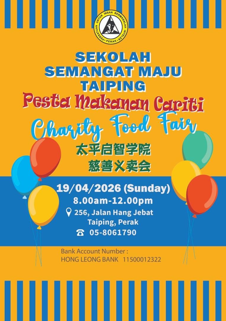 We are excited to announce a special event that promises to delight your taste buds while supporting meaningful cause. The Special Needs School in Taiping, Perak, is hosting the Annual Food Fair on Sunday, 19th April 2026, and we need your support to make it a success !